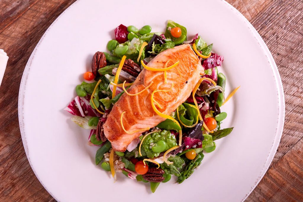 Kabar gembira bagi Anda yang ingin diet namun tetap sehat. Cobalah mengkonsumsi ikan salmon untuk dijadikan menu makan sehat Anda. Sebab, banyak orang yang percaya bahwa ikan salmon ternyata dapat menurunkan berat badan. Kadar protein yang tinggi mampu menjadi pelengkap untuk orang yang ingin menurunkan berat badan. Selain itu, salmon memiliki lemak tidak jenuh yang dapat mengubahnya menjadi energi bagi yang mengkonsumsinya.